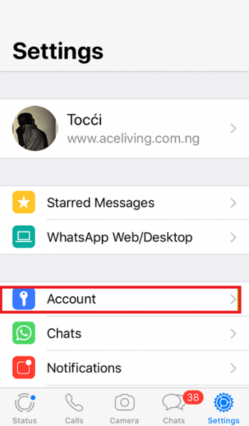 If WhatsApp opens to a chat conversation, first tap the “Back” button in the top-left corner of the screen.