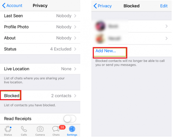 If you have any contacts blocked, “Add New” will be seen below the bottom contact’s name.