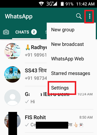 Tap on “Menu” (⋮) on the top-right corner of the WhatsApp main screen. A drop-down menu will appear.