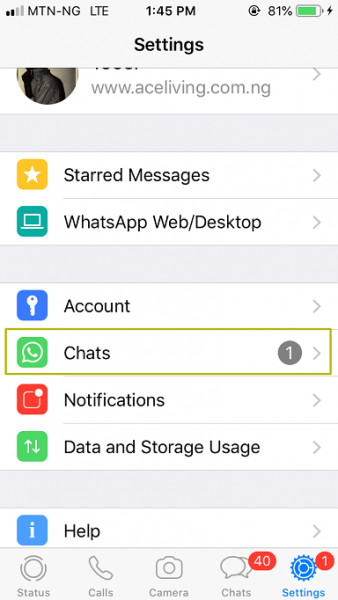 Proceed to WhatsApp, tap on “Settings”, click on Chats.