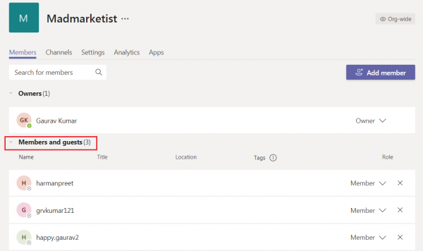 Now, click on Members & Guests under the team whose members you want to delete. That will show you all the members in that particular team.