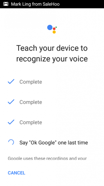 After that it will ask you to say OK Google 4 to 5 times to recognize your voice.