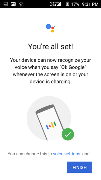 After that it will ask you to say OK Google 4 to 5 times to recognize your voice.