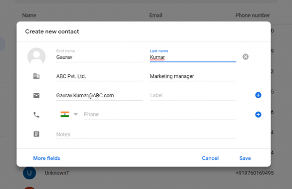 You can click on more fields to add any new extra filed like website URL, Address etc.