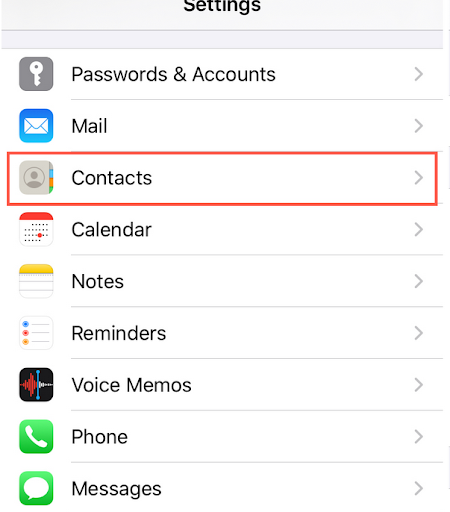 Step 2. Navigate to “Settings” on your iPhone, then click on “Contacts.” A menu will appear shortly titled “Allow Contacts to Access.”