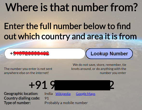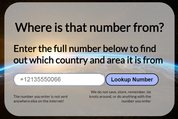 Another tool you can make use of is the website whereisthatnumberfrom.com