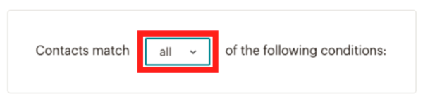 - As you want the Mailchimp segmentation to fulfill all the conditions, click the Contacts Match drop-down menu and choose all (as shown in Image 7).