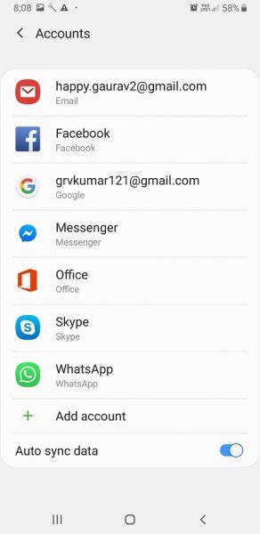 Go to the Settings app on your Android phone and Select Accounts & Sync. For some devices, this option might be “Accounts” or “Account & Backup” only instead of Accounts & sync.