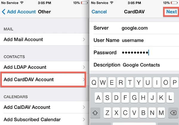 Tap on Add CardDAV Account
