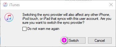 Step 5. For the subsequent prompt, click “Switch,” then go to the lower right and hit “Sync.”