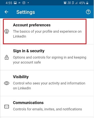Open the LinkedIn app and tap on your profile picture and then on the “Settings” icon.