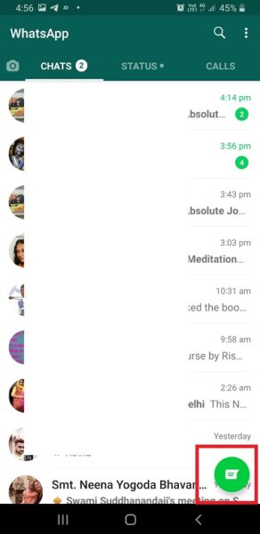 - If you add new contacts, head to WhatsApp and in the app go to your contacts list (the icon in the bottom right hand side that looks like a speech bubble) and search for the new contact here by clicking on the magnifying glass.