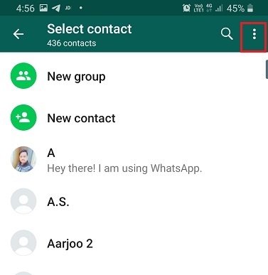 - In the same list of contacts, head to settings in the top right hand corner (the three vertical dots) and select ‘refresh’.