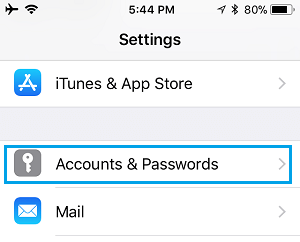 Select Accounts and Passwords (or if you’re using an older version of iOS: Mail, Contacts, Calendar).