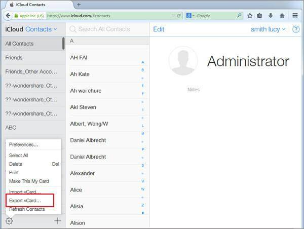 Click the gear icon again and select, Export vCard. It should now download onto your computer.