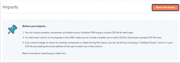 3. Now you’re in the import dashboard you can go to ‘start a new import’.