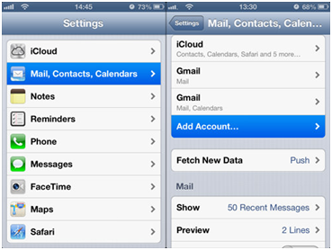 1. Go to ‘Mail, Contacts and Calendars; in your iPhone’s settings.